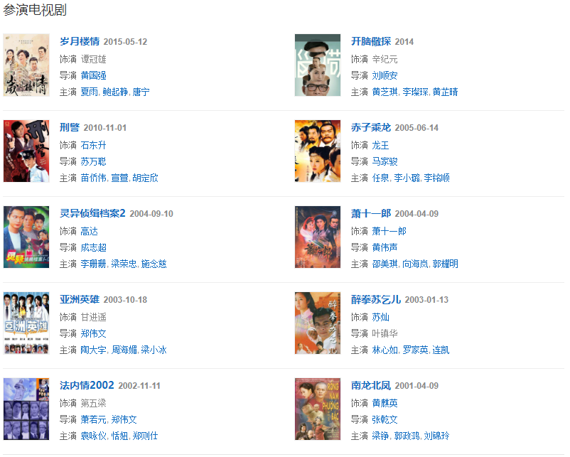 天地豪情》獲得香港電視劇年度收視冠軍。2001年主演商戰(zhàn)劇《