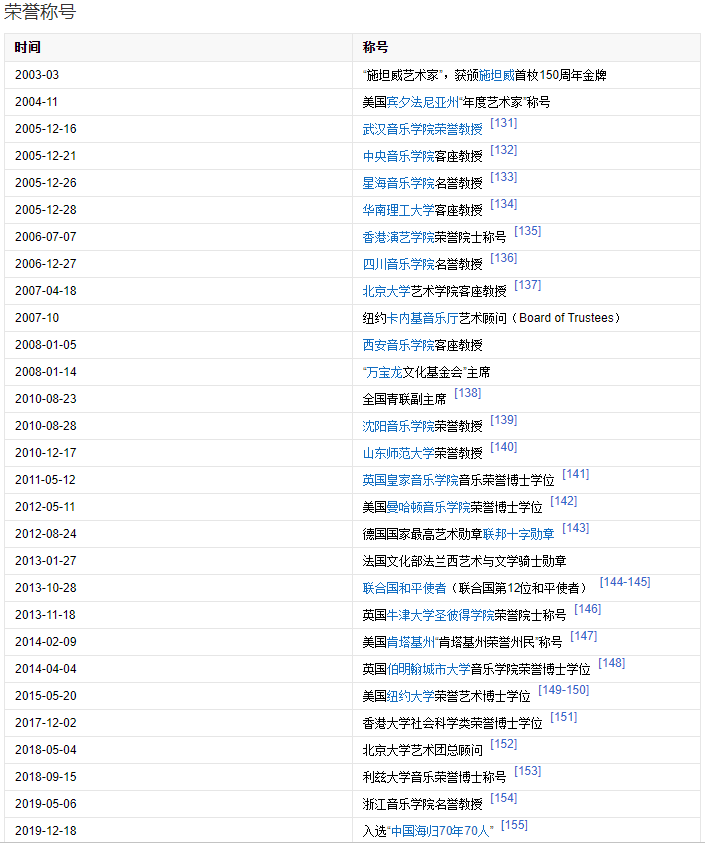 黃河之子》。2008年,獲得美國(guó)錄音師協(xié)會(huì)頒發(fā)的“藝術(shù)榮譽(yù)獎(jiǎng)”。2010年,獲得國(guó)際門(mén)德?tīng)査纱螵?jiǎng),成為首位獲得該獎(jiǎng)項(xiàng)的中國(guó)人。2011年,舉行了“