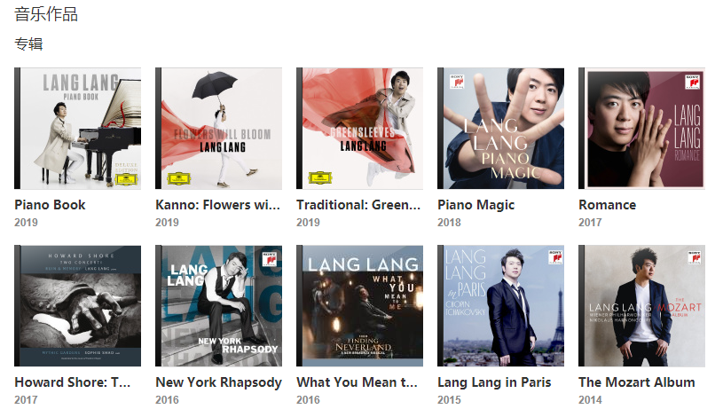 紐約狂想曲》。2017年8月27日,獲得亞洲新歌榜年度盛典音樂(lè)視頻杰出貢獻(xiàn)獎(jiǎng);12月8日,獲得“商業(yè)星力量巔峰人物年度盛典”年度實(shí)力音樂(lè)人獎(jiǎng)。2019年,獲得“法國(guó)勝利大獎(jiǎng)”,成為首位中國(guó)獲獎(jiǎng)?wù)撸?月25日,發(fā)布個(gè)人鋼琴演奏專輯《